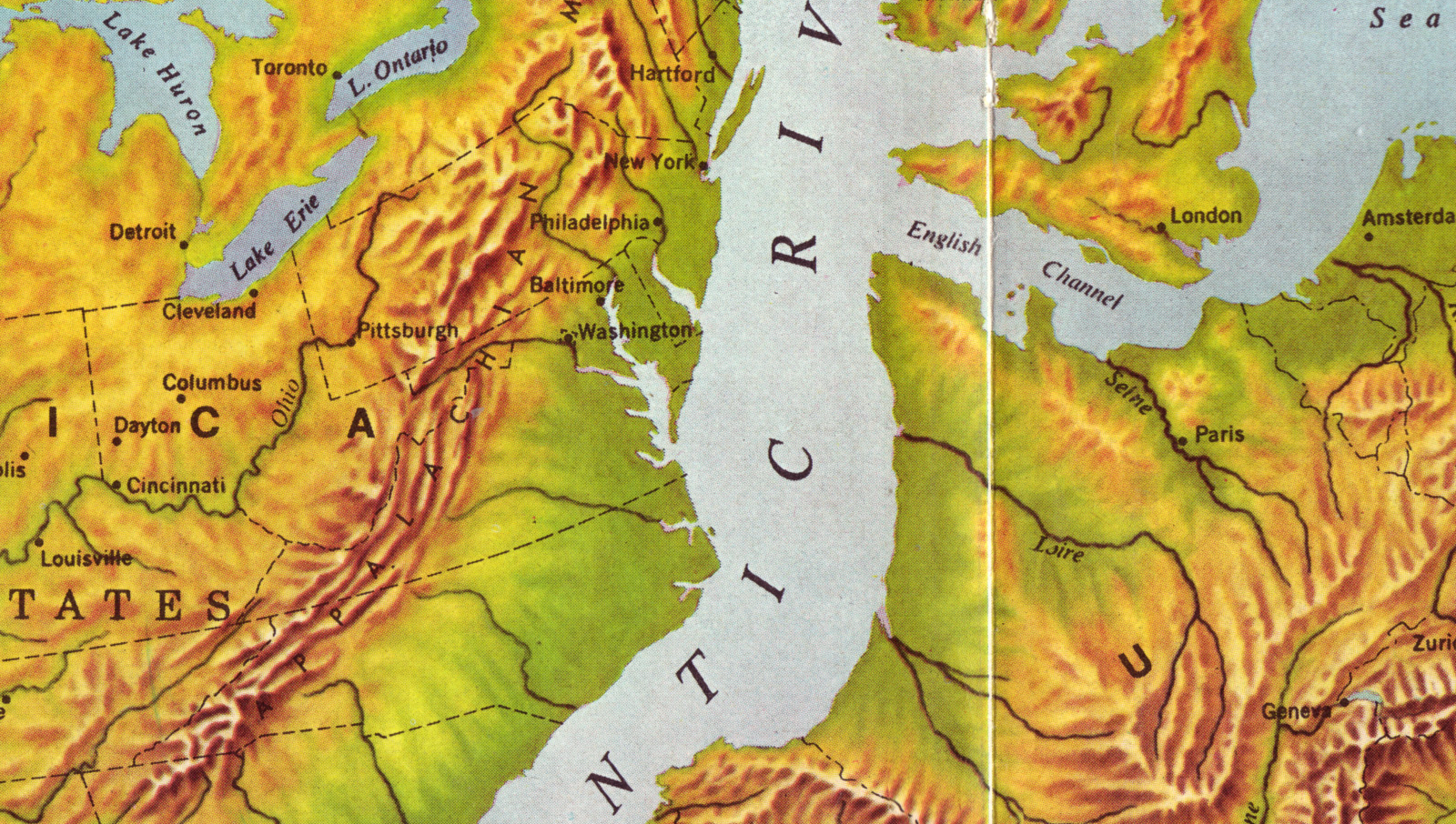 This poster cleverly plays on the half-remembered geological truth that the Atlantic Ocean, at some distant point in the past, really was a very narrow body of water.