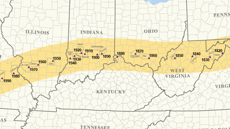 America’s demographic centre of gravity has been moving steadily eastward for over 200 years