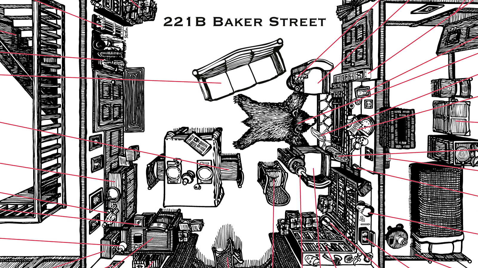 The floorplan was “drawn from notes taken while reading all 60 Sherlock Holmes stories twice in a row“
