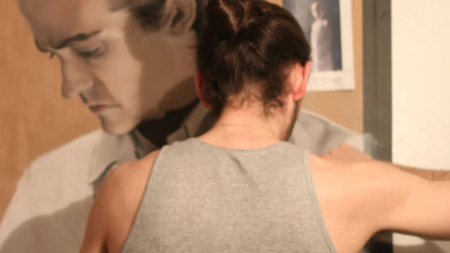 Gallery owner and curator Daniel Rechelbacher discovered Stutzman by chance. His close friend Vera is Justin’s neighbor in Bushwick, Brooklyn. Sitting out on her deck one day, Rechelbacher glanced at her neighbor’s apartment, and through the window saw Stutzman working on his cryptic large self-portrait in pastel. “Every time I’d go over there, I’d peek through his window and see the work progress,” says Rechelbacher. “I would usually stay and have a couple extra beers on her deck until I knew he was coming home. Then I’d knock on his door and say, hey, I saw your work, let me in.” This continued for a year and a half.