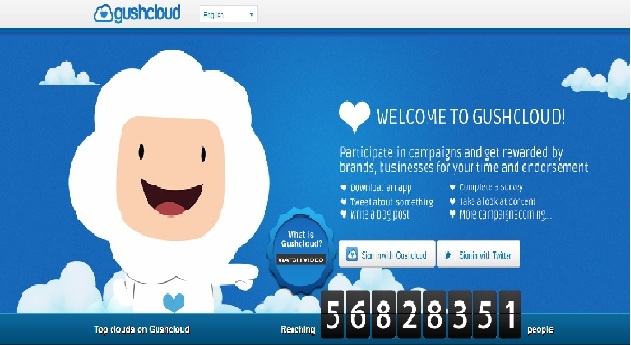 Gushcloud takes a beautifully simple and original idea (real word of mouth social marketing done by the public and not brands or celebrities) and mates it with a playful user interface.