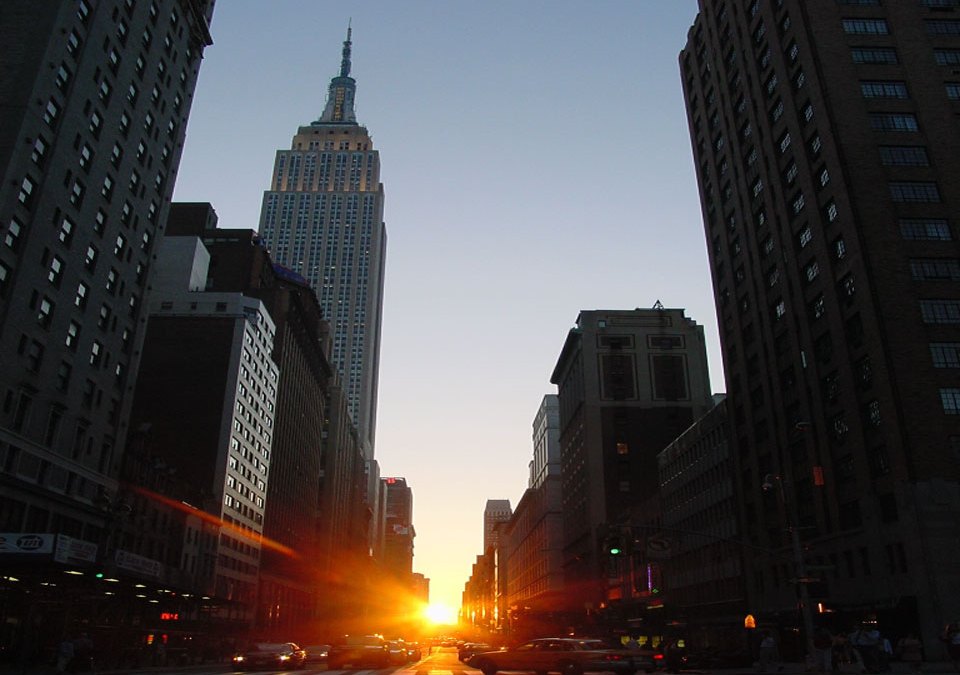 This coming Saturday, if it is clear, well placed New Yorkers can go outside at sunset and watch their city act like a modern version of Stonehenge. Manhattan‘s streets will flood dramatically with sunlight just as the Sun sets precisely at each street’s western end. Usually, the tall buildings that line the gridded streets of New York City‘s tallest borough will hide the setting Sun. This effect makes Manhattan a type of modern Stonehenge, although only aligned to about 30 degrees east of north. Were Manhattan’s road grid perfectly aligned to east and west, today’s effect would occur on the Vernal and Autumnal Equinox, March 21 and September 21, the only two days that the Sun rises and sets due east and west. Pictured above in this horizontally stretched image, the Sun sets down 34th Street as viewed from Park Avenue. If Saturday’s sunset is hidden by clouds do not despair — the same thing happens twice each year: in late May and mid July. On none of these occasions, however, should you ever look directly at the Sun.