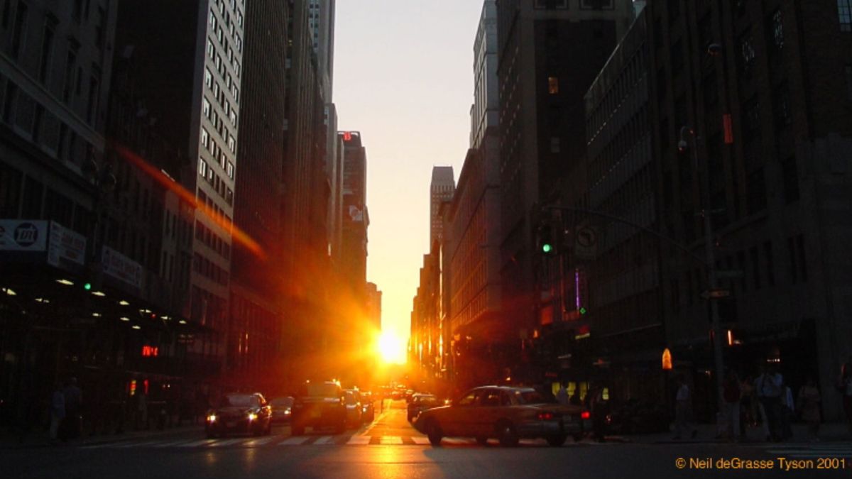 It was a miserable rainy day in New York City yesterday, spoiling a day that the astrophysicist Neil de Grasse Tyson has popularized as “Manhattanhedge,” which Tyson describes as the day “when the setting Sun aligns precisely with the Manhattan street grid, creating a radiant glow of light across Manhattan’s brick and steel canyons, simultaneously illuminating both the north and south sides of every cross street of the borough’s grid.”