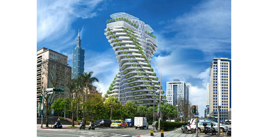 A luxury apartment building is now under construction in Taiwan, and its design was inspired by the double helix of the DNA molecule. The building, named Agora Garden, will twist at a 90 degree angle, and not just because that’s a cool thing to do. The design creates more surface area, and enables suspended open-air gardens to hang from one level to the next, unobtrusively.