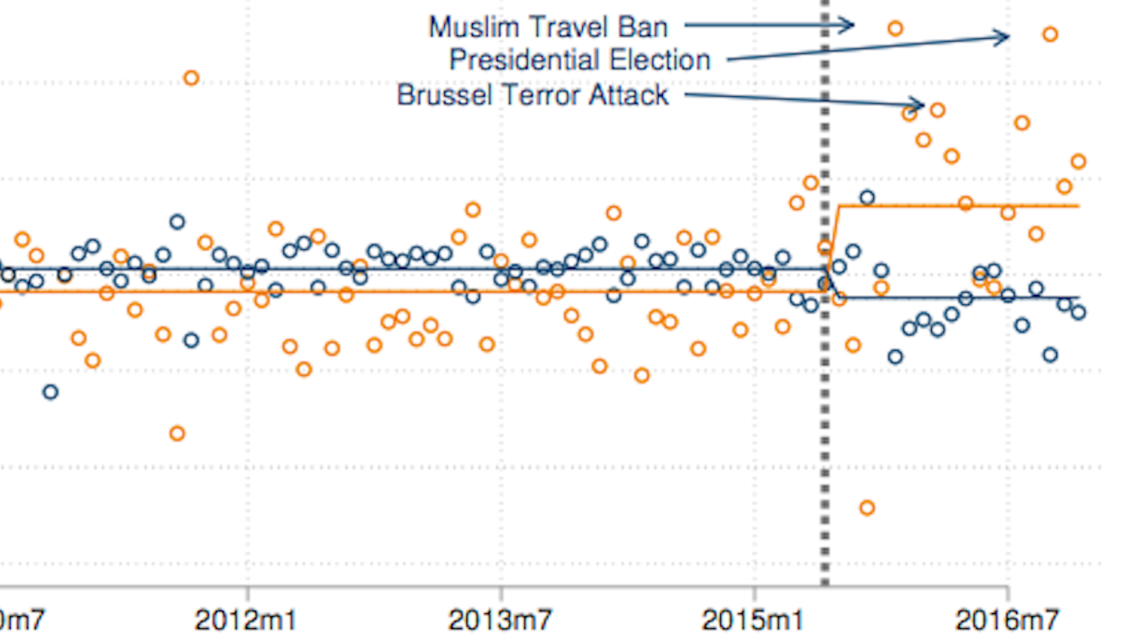 “Without looking at the various polling data, it is obvious to anybody the hatred is beyond comprehension. Where this hatred comes from and why we will have to determine,” Trump said. “Until we are able to determine and understand this problem and the dangerous threat it poses, our country cannot be the victims of horrendous attacks by people that believe only in Jihad, and have no sense of reason or respect for human life.”
