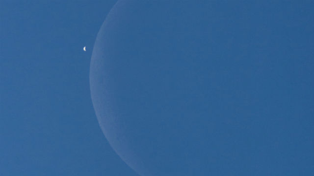 For most, the silvery celestial beacon rose in a close pairing with an old crescent Moon on February 26. But seen from locations in western Africa before sunrise, the lunar crescent actually occulted or passed in front of Venus, also in a crescent phase. Farther to the east, the occultation occurred during daylight hours. In fact, this telescopic snapshot of the dueling crescents was captured just before the occultation began under an afternoon’s crystal clear skies from Yunnan Province, China. The unforgettable scene was easily visible to the naked eye in broad daylight.