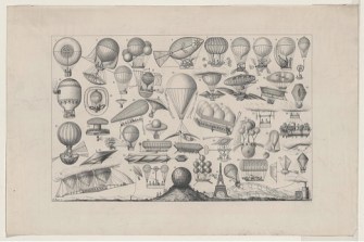 1884. Balloons, airships, and other flying machines designed with some form of propulsion.