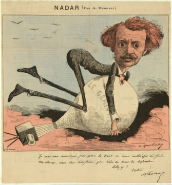 1862. French caricature of photographer and balloonist Gaspard-Félix Tournachon a.k.a Nadar, who made the first aerial photography / A. Humbert.