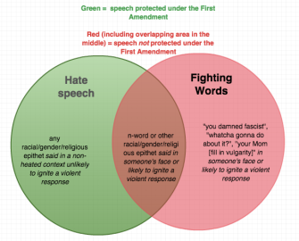 What we have here is a tragic misunderstanding of Venn diagrams. Cuomo construes “fighting words” as a wholly owned subsidiary of “hate speech.” Not so. The categories are overlapping. Let me illustrate: