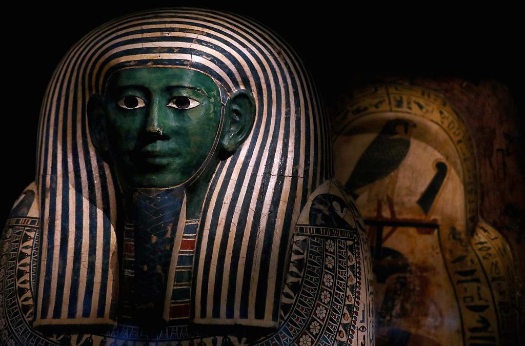 A detailed view of Osiris, displayed in part in the permanent Egyptian collection and also part of the ‘Queens of the Nile’ Exhibition held at the National Museum of Antiquities or Rijksmuseum van Oudheden. (Photo by Dean Mouhtaropoulos/Getty Images)