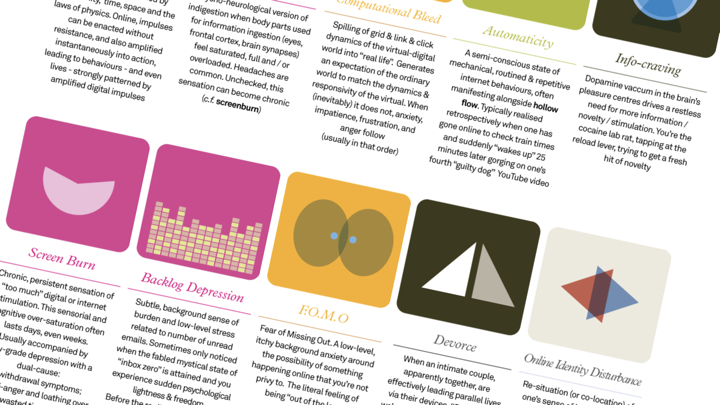 Once we give a problem a name, we can being to address it, right? Well, thankfully, writer/designer David McCandless, fresh off of writing his book Knowledge is Beautiful, has graciously invested the time required to identify and label the mental — sorry, “inter mental” —disorders from which so many of us suffer in this always-on, internet-obsessed, device-dependent era. Never mind that the resulting infographic he’s assembled is hilarious.