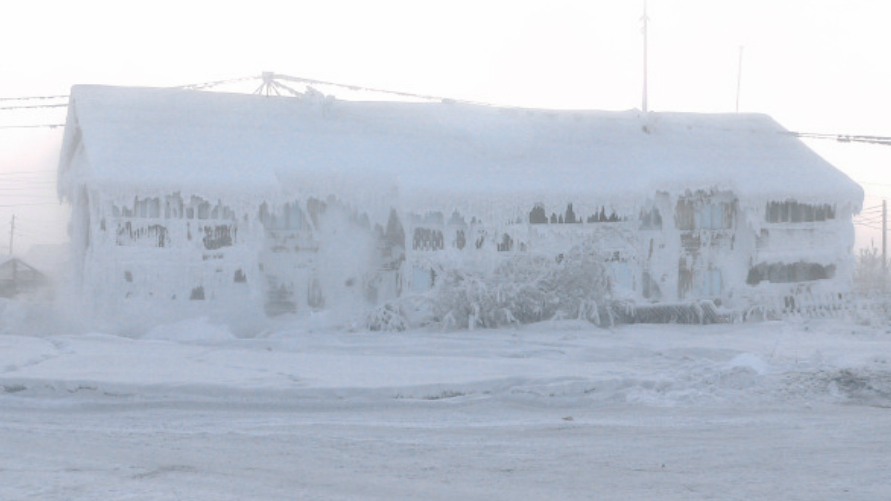 “Such a temperature is so cold that people here regularly consume frozen meat, keep their cars running 24/7 and must warm the ground with a bonfire for several days before burying their dead… Crops don’t grow in the frozen ground, so people have a largely carnivorous diet—reindeer meat, raw flesh shaved from frozen fish, and ice cubes of horse blood with macaroni are a few local delicacies.”
