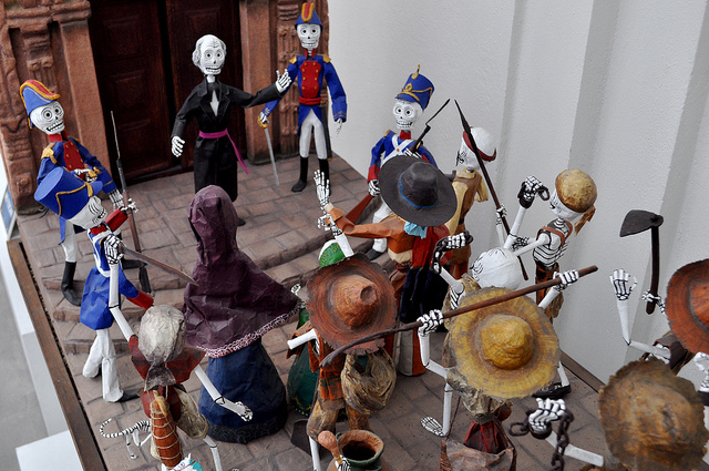The above photo portrays a calaca(skeletal) recreation of the event.