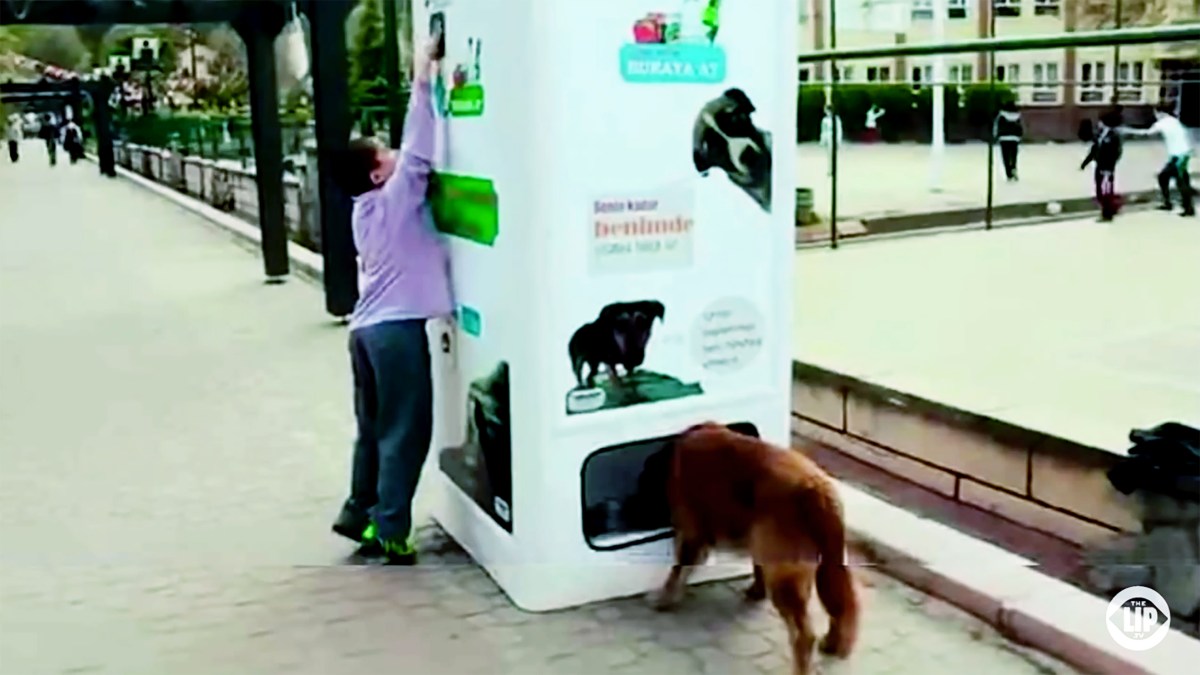 In many cities around the world stray dogs are part of city life. One such city is Istanbul, where 150 thousand stray dogs and cats share the streets with 14 million human inhabitants. A clever device by the Turkish company Pugedon aims to increase recycling while providing food and water to stray dogs and waking up our kindness and humanity.