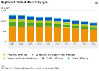 In 2017, Dutch officials recorded about 49 crimes for every 1,000 citizens. That’s down from 93 per 1,000 in 2001, and it’s the country’s lowest level since 1980. In general, all types of crime have been falling over the past decade.