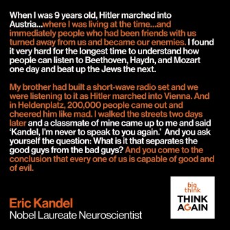 On this week’s episode: Professor Eric Kandel of Columbia University and host Jason Gots discuss abstract art, memory, identity, and the nature of evil. When he was 9 years old, Eric Kandel listened on a short-wave radio his brother had made as Hitler marched into Kandel’s hometown of Vienna, Austria. The next day, a non-Jewish classmate told him “Kandel, I’m never to speak to you again.” In the year 2000, He won the Nobel Prize in Physiology or Medicine for pioneering work on understanding how memory is stored in the brain by studying a particular type of sea snail with a relatively simple nervous system. In his recent books, he’s been pioneering in a different way––trying to bridge the gap between the “two cultures” of the sciences and the humanities. His current book Reductionism in Art and Brain Science continues this essential work by looking at the ways both modern art and science “reduce” complex phenomena down to their component parts to achieve new insights and effects.