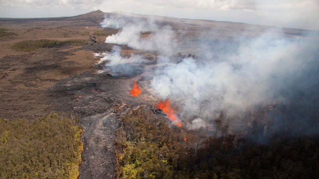 The new fissure (see top left) that began erupting last weekend after the draining events at Pu`u O`o and Halema`uma`u appears to have more longevity than the last similar fissure […]