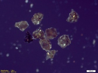 With all the rapid fire news on eruptions as of late, combined with my busy schedule during the school year, I haven’t been able to post as many articles on some basic aspects of volcanology. I will try to remedy some of this over the summer and the first will look at volcanic ash and specifically the ash from Eyjafjallajökull. I’ve taken some photomicrographs of the ash from Eyjafjallajökull (sent to me graciously by Jón Frímann) so we can discuss the composition and morphology of the ash.