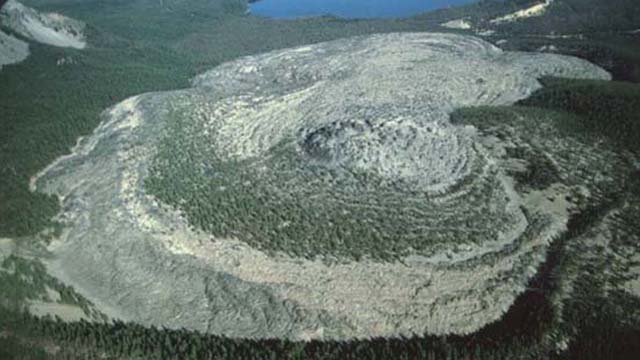 Top left: An undated image of the Big Obsidian Flow in Newberry Caldera, Oregon.