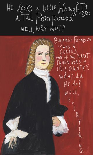 In her latest "visual column" for the New York Times, the always-inspiring Maira Kalman documents the many innovations of Benjamin Franklin. The question is not what did Franklin invent, but rather, what didn't he invent? Let's see... the Franklin stove, swim fins, bifocal glasses, the lightning rod, the odometer... If he had lived during the Italian Renaissance, he would have been America's answer to Da Vinci. As it was, he helped to make America the "land of invention" during the mid-19th century.