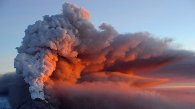 Top left: Kizimen with an impressive steam-and-ash plume seen in February 2011.