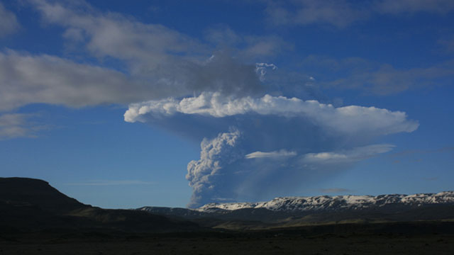 Top left: The eruptive column from the May 21, 2011 eruption of Grímsvötn in Iceland.
