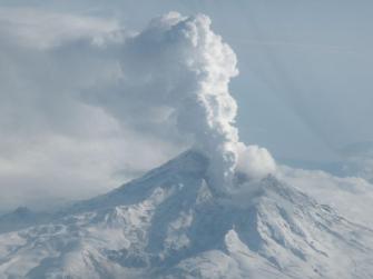 Redoubt with a prominent steam plume on April 7,2009. Image courtesy of Robert Cole/AVO