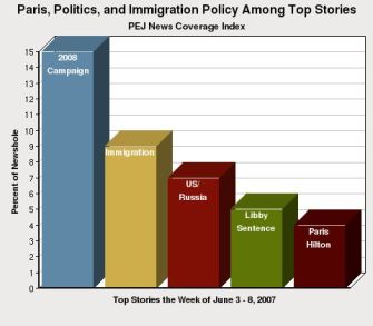 Indeed, coverage of Paris Hilton pales in comparison to the mounds of media attention heaped on the death of Anna Nicole Smith. Here’s what Pew concluded in analyzing coverage trends during the first quarter of 2007: