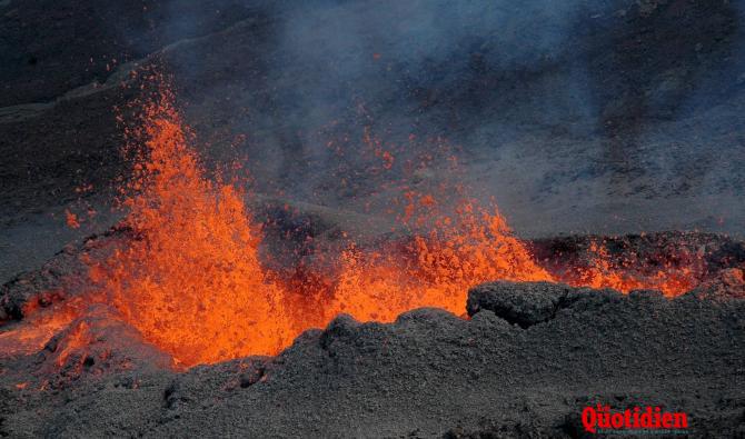 The new fissure on Piton de la Fournaise, which started on October 14, 2010. The top left image is a close up of this new fissure vent eruption (click on it to see a image version).