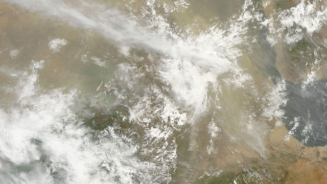 Top left: A MODIS image of the ash plume from Nabro in Eritrea as seen on June 12, 2011. Click on the image to see a larger version.