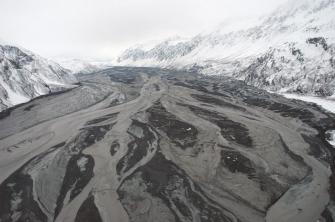 Redoubt has simmered down some today with no new eruptions since yesterday evening. AVO’s field crew not only fixed the Hut webcam, but also spotted massive lahar deposits (see above) in the Drift River valley that traveled 35 kilometers downstream and have officials on local and national levels worried about the Drift River Oil Terminal. Funny, it sounds so familiar somehow? As usual, an ounce of planning and thought about locating an oil terminal at the foot of an active volcano would have prevented about 10 tons of problems now.