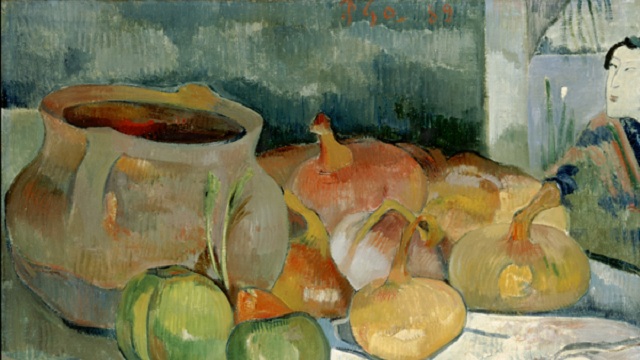 [Image:Paul Gauguin (French, 1848–1903), Still Life with Onions, Beetroots and a Japanese Print, 1889. oil on canvas. 16 x 20.5 in. Collection of Judy and Michael Steinhardt, New York, New York.]