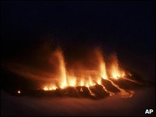 The fissure vent eruption on Eyjafjallajokull in Iceland on March 21, 2010.