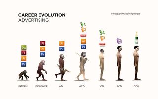 Enjoyed this clever “evolution of advertising” image — the Don Drapers of the world are thinking about the next bottle of champagne, not about PowerPoint and Adobe Acrobat.