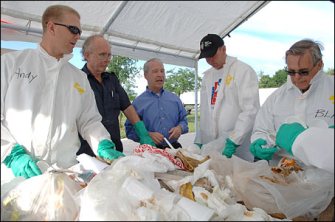 “New Evangelical” Joel Hunter (blue shirt) works with church members on a recycling campaign.