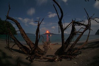 Anak Krakatau erupting as seen from Rataka Island. Image taken by Marco Fulle of Stromboli Online.