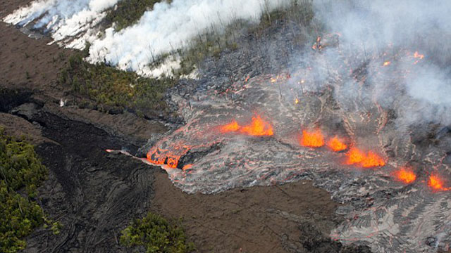 Eruptions reader Boris Behncke pointed out that things are afoot in the Halema`uma`u Crater at Kilauea. To steal his description: ” the lava lake returned triumphantly to the active pit last night, and now it is filling virtually the entire field of the