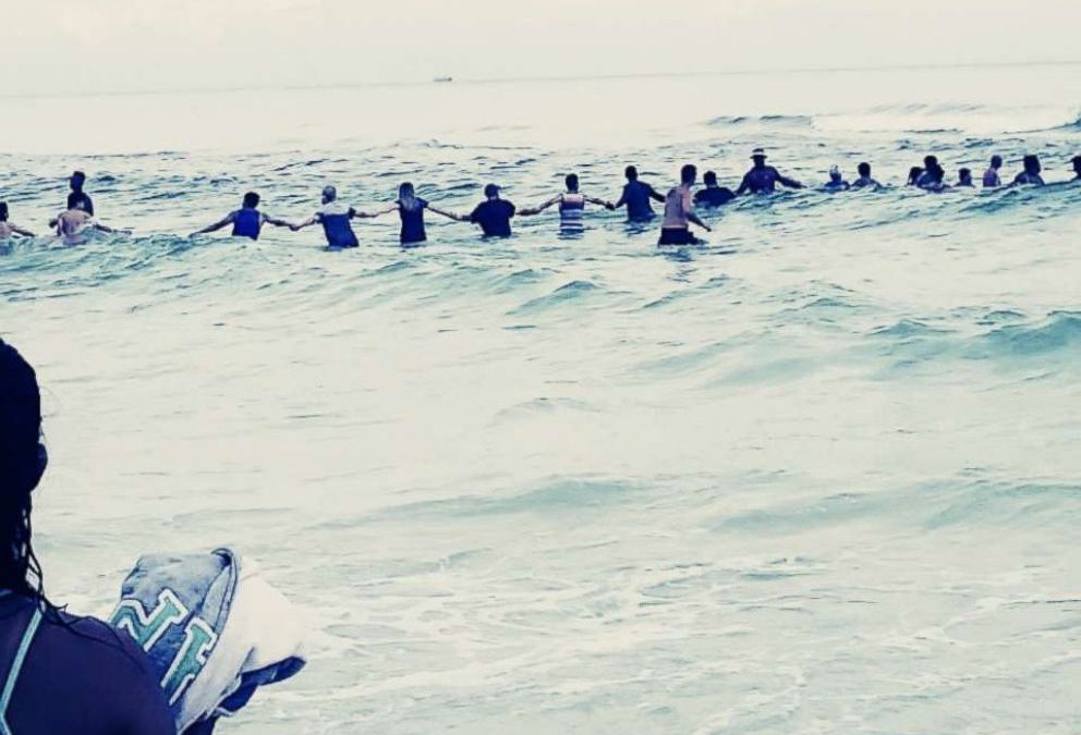 “To see people from different races and genders come into action to help TOTAL strangers is absolutely amazing to see!! People who didn’t even know each other went HAND IN HAND IN A LINE, into the water to try and reach them. Pause and just IMAGINE that,” wrote Jessica Simmons in her Facebook post.