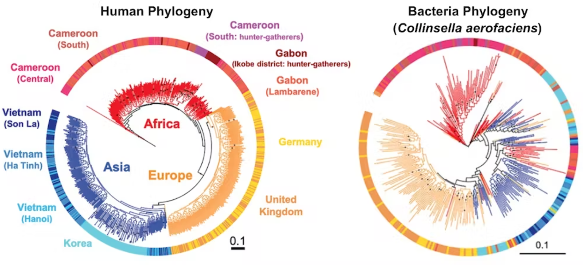 We hypothesized that as humans fanned out across the globe and diversified genetically, so did the microbial species in their guts. In other words, gut microbes and their human hosts “codiversified” and evolved together – just as human beings diversified so that people in Asia look different from people in Europe, so too did their microbiomes.