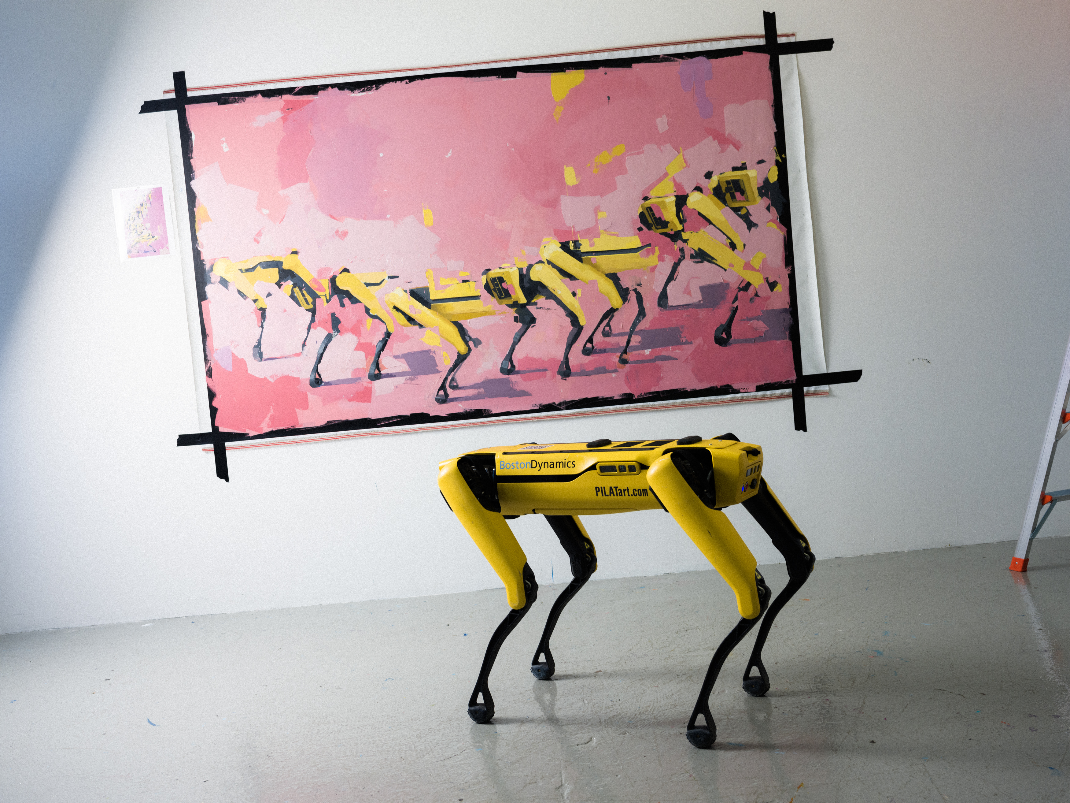 New forms of technology she discovered, are like children and should be painted accordingly. In order to pull off a convincing portrait of either subject there has to be, as Andy Warhol showed in his portraits, an element of playfulness. Pilat started painting her portraits of Spot using bright, pastel colors like baby blue and pink. “When you paint a baby,” she tells Big Think, “it’s difficult because there is nothing there. Conceptually, this technology is in an embryonic stage.”