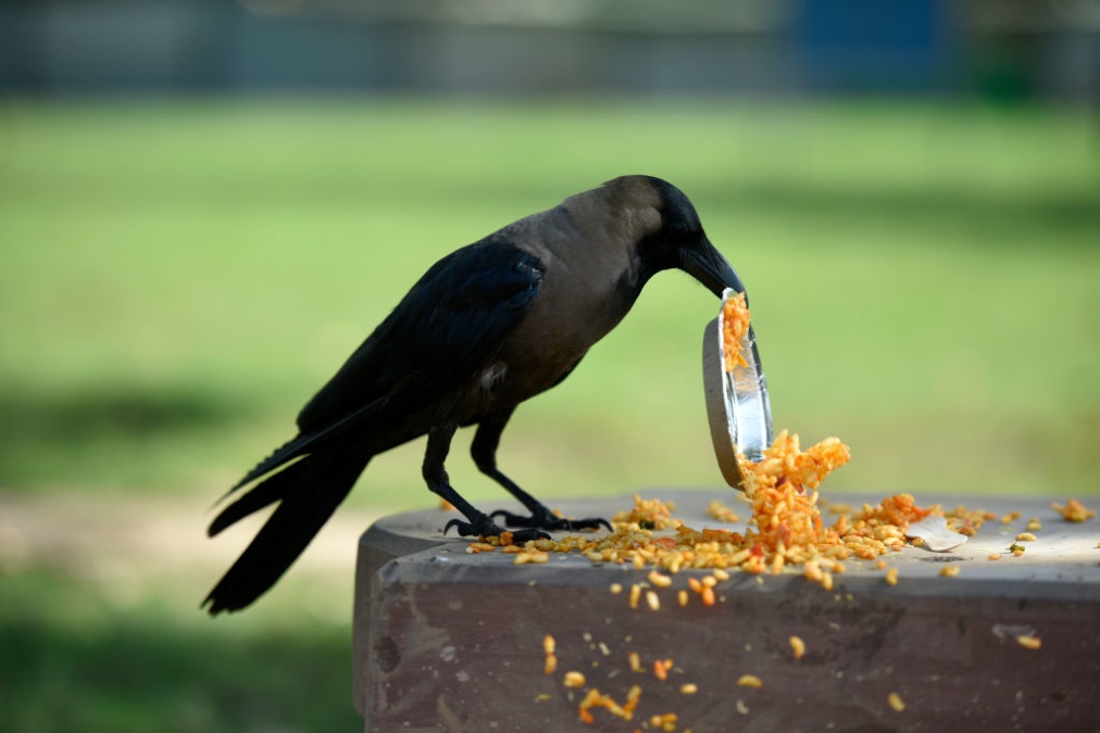 Crows are omnivorous scavengers and will eat just about anything — insects, seeds, fruits, eggs, and small animals. Historically, they would often appear on battlefields, in cemeteries, and after disasters to snack on the tasty carrion we humans left lying around. One of Europe’s species is in fact named the carrion crow.