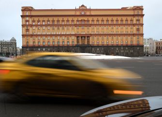 Cars drive past the headquarters of the FSB security service, the successor to the KGB in central Moscow on December 30, 2016. (Photo credit: VASILY MAXIMOV/AFP/Getty Images)