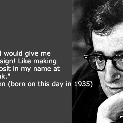 "If only God would give me some clear sign! Like making a large deposit in my name at a Swiss bank." -Woody Allen (born on this day in 1935)