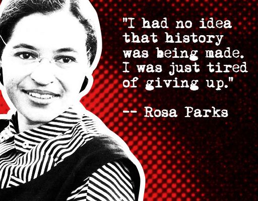 "I had no idea that history was being made. I was just tired of giving up."- Rosa Parks (born on this date in 1913)