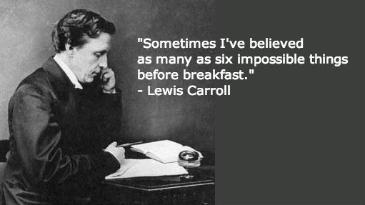 "Sometimes I've believed as many as six impossible things before breakfast."- Lewis Carroll (born on this date in 1832)