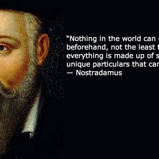 “Nothing in the world can one imagine beforehand, not the least thing, everything is made up of so many unique particulars that cannot be foreseen.” ― Nostradamus (born on this date in 1503, we think)