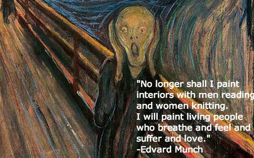 "No longer shall I paint interiors with men reading and women knitting. I will paint living people who breathe and feel and suffer and love."- Edvard Munch (born on this date in 1863)