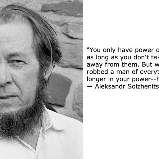 “You only have power over people as long as you don't take everything away from them. But when you've robbed a man of everything, he's no longer in your power--he's free again.” ― Aleksandr Solzhenitsyn (born on this date in 1918)