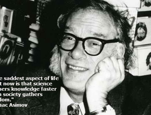 “The saddest aspect of life right now is that science gathers knowledge faster than society gathers wisdom.” — Isaac Asimov