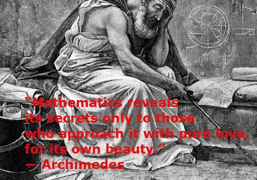 “Mathematics reveals its secrets only to those who approach it with pure love, for its own beauty.” ― Archimedes